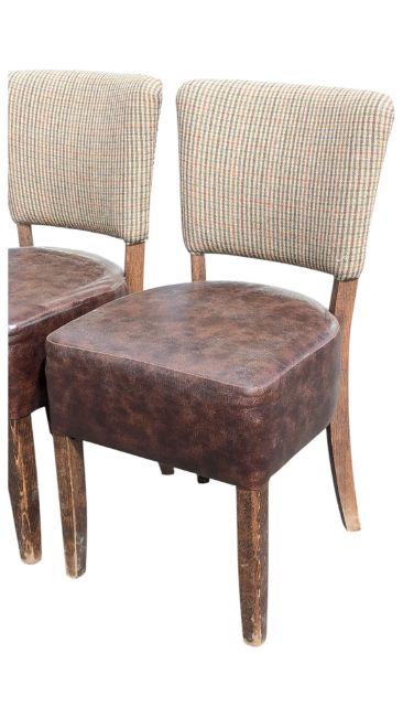 Set of four Art Deco mid century tartan back dining club chairs. Padded back rest on cushioned seat with angled upright legs.