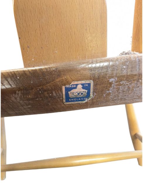 Ercol Furniture - A 20th century Ercol comb-back double bow ' Chairmakers ' Windsor armchair. Of beech and elm construcion the chair being raised on tapering feet with saddle seat united by H stretcher with spindle gallery back rest and horseshoe style elbow rests. Together with a similar smaller example. Measures approx: 103x62x70cm