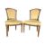 Pair of French early 20th century carved mahogany & velvet upholstered bedroom salon chairs. Each chair having an intricately carved curved back rest with relief geometric interwining motifs and tapering reeded columns to sides. Padded upholstered back rest and overstuffed seat in yellow fabric. All raised on carved turned reeded supports.