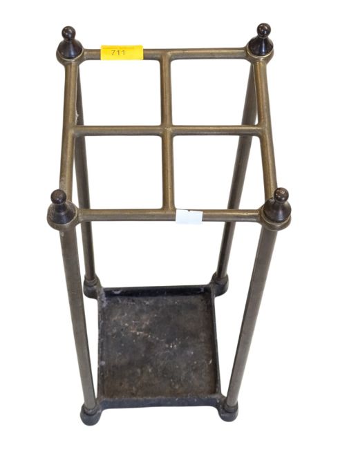 An early 20th century circa 1900s brass umbrella stand / stick stand. The umbrella stand having interlocking brass tubular frame. Measures approx: 54x20x20cm