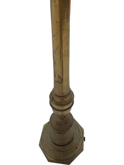 A 20th century brass converted candlestick lamp. The lamp having octagonol base. Measures approx: 104x20cm