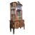 A Biedermeier early 20th century mahogany and glazed front bookcase cabinet. The cabinet having a curved glazed front top revealing a shelved interior. The base having a canted top over twin marquetry front cupboard doors, embellished with laurel cartouche.