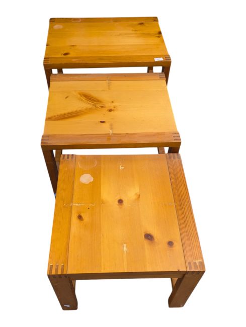 British Contemporary Design - A modern oak nest of three rectangular tables with exposed dovetail detailing to corners. Of graduating size with quadrille style supports.