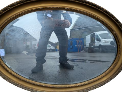 A 19th century Victorian giltwood and gesso oval wall mirror. The mirror having moulded florals to frame and beaded edge.