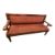A vintage 20th century mahogany lodge railway waiting pub bench. Oak construction with flat elbow rests, padded back rest and seat raised on turned legs the fabric with stud work to borders. Measures approx: 100x183x99cm