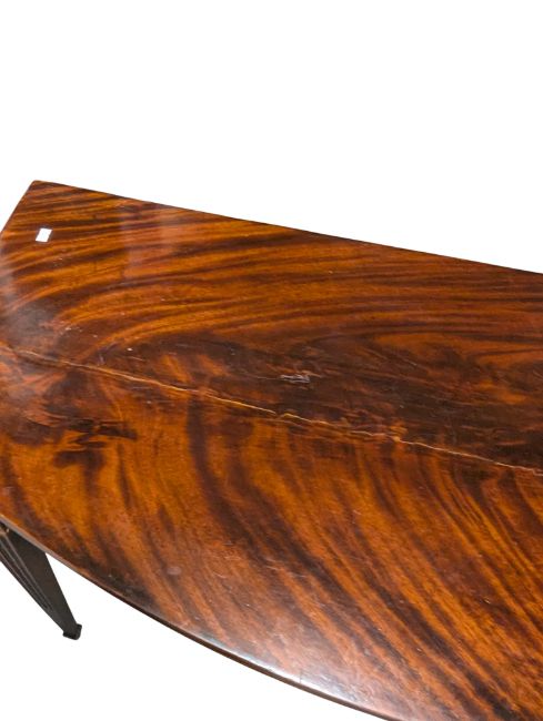 A 19th century Regency inlaid mahogany card / games table. The card table having crossbanded fold over top opening to reveal baize interior, with inlaid frieze below. Raised on Sheraton supports.