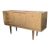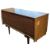 Greaves & Thomas - Mid century teak sideboard credenza. Long rectangular form with a trio of drawers beside two cupboard doors. Tapering legs with recessed / lipped pull handles. Measures approx: 79x138x45cm