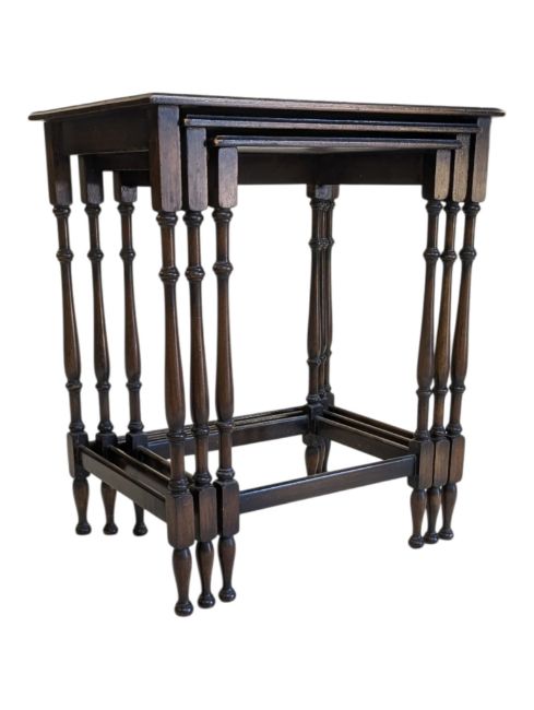 A 20th century walnut nest of tables. Graduating form with turned supports united by perimeter stretchers. Measures approx: 54x46x33cm