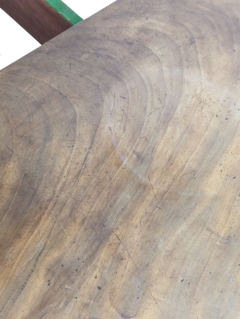 George III 19th century mahogany card table. Raised on turned reeded legs with fold over table top. Measures approx: 76x44x92cm