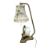 Mid century Art Deco style Pifco bedside Timeside table lamp and alarm clock. Featuring a light and floral patterned lampshade positioned over the clock face with an Arabic numeral chapter ring. Raised on a brass base and light fixture on a brass arm. Measuring approx. 35.5cm x 14cm x 21cm.