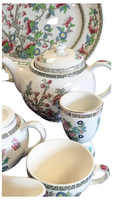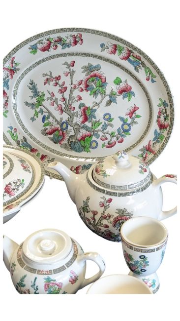 Johnson Bros - Indian Tree - A vintage and later dinner / tea service. Comprising cups, saucers, plates, lidded casserole dish, teapot etc