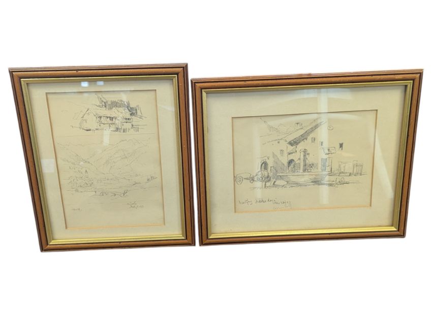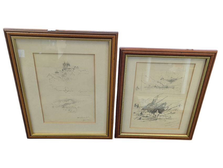 A collection of six late 19th century landscape scenic illustrations. Including drawings of the Chamois Valley, Italy, Mont Blanc, etc. Each framed and glazed.