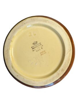 1930s Myott Son & Co Art Deco ceramic jug. Jug featuring a pinch neck design in an orange and brown hand painted colourway. Makers mark to the base and numbered 8318. Measuring approx. 20cm tall.