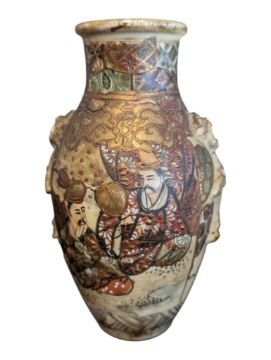 Collection of 19th / 20th century Japanese Satsuma pieces. To include a pair of vases decorated in traditional figures and floral decoration, and three bowls / dishes of varying sizes also decorated in traditional figures and foliage to the background. Both of the pieces being hand painted in a red and gilt colourway. The bowls feature Japanese marks to the reverse. Vases sold as seen. Vase measuring approx. 15.5cm tall.