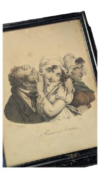 Four L. Boilly lithographs, all 19th century, depicting comical scenes, including: 'Les Mangeurs d'Huitres', 'Les Cinq Sens' and others, framed, L26cm x H33.5cm