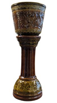 Bay Keramik - A vintage mid century circa 1960s ceramic West German planter / jardiniere. Having moulded floral relief to bowl planter top, supported on a central column with circular foot with further matching detail. Stamped W - Germany 673 22 & 449 40.