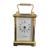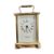 Walter Bull & Sons - A 20th century brass carriage clock. The clock having swan neck handles with black enamelled roman numerals to chapter ring, raised over a stylobate base. Measuring approx 12cm x 8cm x 6.5cm.