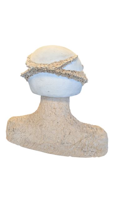 A contemporary studio pottery bust modelled in the form of a figure wearing helmet with eyes closed. Measuring approx. 37cm tall.