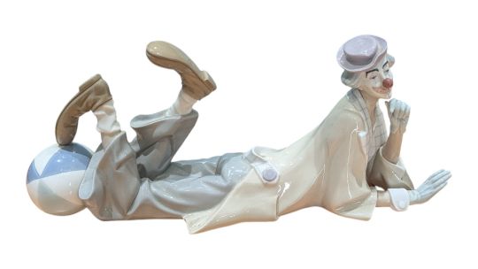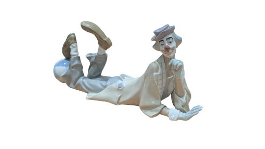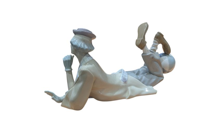 Lladro - A vintage 20th century Lladro Spanish porcelain clown figure. Model no. 4618, Lying Clown (Payaso Acostado). In original box.