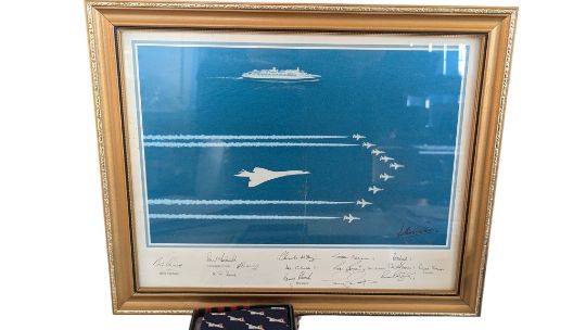 Collection of late 20th century / early 20th century Concorde memorabilia. To include Concorde Corgi and Matchbox diecast, The Concorde Story book and VHS, glass paperweight, totebag, John Pettitt signed print, two John Larder signed prints, newspapers, books, and more.