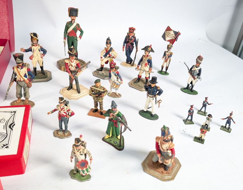 Lead Figures - a collection of boxed and loose lead toy soldiers of various makers, including Drumbeat Collectors Series, Tommy Atkins WWI World War One Mounted Soldier Leading Packhorse, Regiments of the World 'The Royal Navy', Fusiler Miniatures 'Royal Navy 1888-1918 Landing Party/At Ease', and a selection of loose soldiers including DelPrado, Tradition of London, and other.