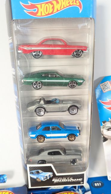Diecast - a collection of Mattel made Hot Wheels carded diecast models with an ex shop stock / trade box. Models to include; Fast & Furious multipack, Back To The Future Time Machine, Ferrari 360 Modena, Aston Martin DB5 and others. Mint, on card.