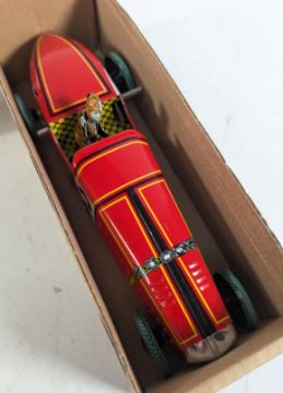 Clockwork Toys - a collection of vintage tinplate clockwork wind up and friction metal toys, to include trams, model railway, boats, planes, racing cars and more. To include Hornby Meccano No. 30 clockwork train with windup key. Several are housed in their original boxes, including a 'Drumming Animal MS565 drumming panda, Minic Toys S.D. Bus, Molto Juguete No. 333 'Ballarina', an MF114 Friction Runner Boat, Schylling Hot Air Balloon, Friction Airplane No. MF107, Schylling Collector Series Tin Outboard Motor Speedboat, and others.