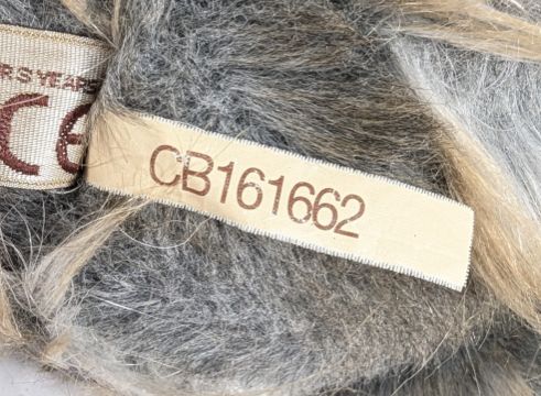 Bears - an original Charlie Bears 'Cheeky Chops' jointed soft toy plush teddy bear. The bear having grey, white and light brown striped fur, with an embroidered nose and suede paw pads, and an organza bow to the neck. Measures approx. 60cm.