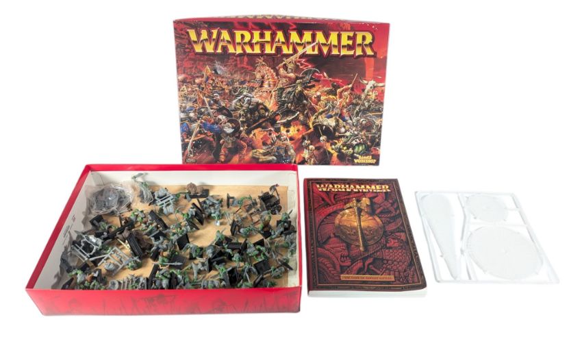 Warhammer - a vintage 2000 Games Workshop Citadel Miniatures fantasy battle roleplay game Warhammer 6th edition Starter Set. Un-checked for completeness, with majority of figures painted. Includes 6th edition rulebook. In original box.