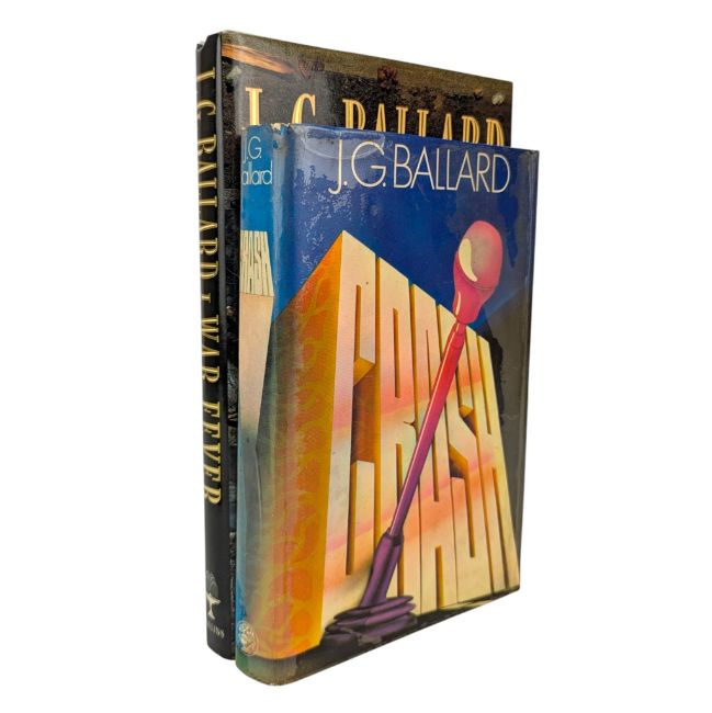 Ballard, J. G. 1973 Crash. London: Jonathan Cape. First edition. J. G. Ballard's controversial and provocative novel following a group of car-crash fetishists. Now widely regarded as an innovative work of post-modern literature. Together with a signed, first edition of War Fever (1990), a collection of 14 short stories, some of which are science fantasy. Both novels are paired with the original dust wrapper. (2)