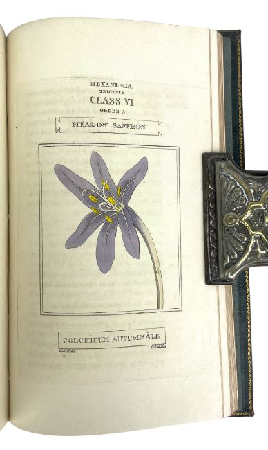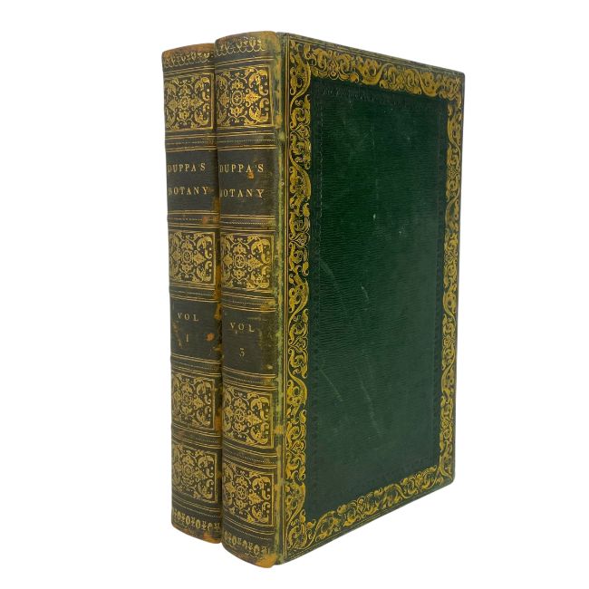 Duppa, Richard. 1816 The Classes and Origins of the Linnaean System of Botany. Illustrated by Select Specimens of Foreign and Indigenous Plants. London: Printed by T. Bensley for Longman, Hurst, Rees, Orme, and Brown. Volumes I and III of a three-volume set. Lacking volume II. First edition. In a contemporary straight-grain morocco binding with decorative gilt detailing to boards, spine, and dentelles, with a gilt edge. Illustrated with beautiful hand-coloured plates. (2)