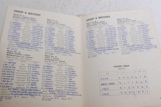 FOOTBALL; WORLD CUP 1966; Group Qualifier original programme - signed by Gordon Banks to rear 'notes' page. Teams meticulously filled in.