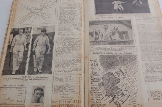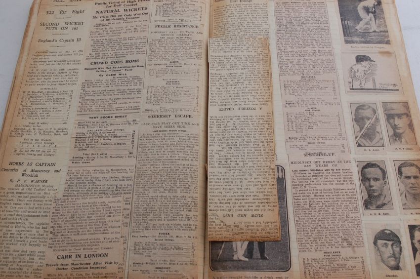 CRICKET; An interesting 1920's Cricket related scrap book album, the first page having a signed handwritten letter by Arthur Gilligan, various vintage cuttings and photos, articles etc.
