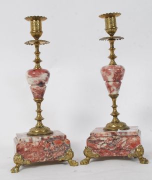 Two Victorian marble and brass candlesticks garnitures.
