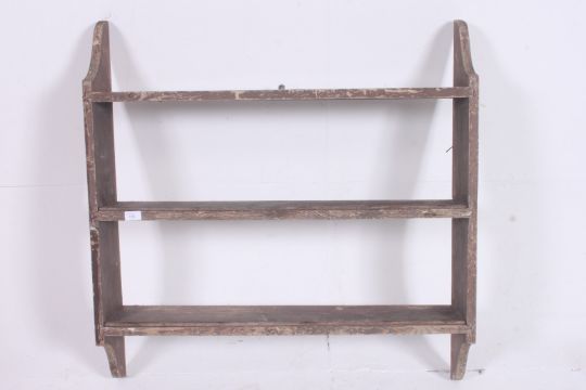 A Shabby Chic country Pine large hanging wall shelf having shaped end supports. Measures 92cm x 90 x 26