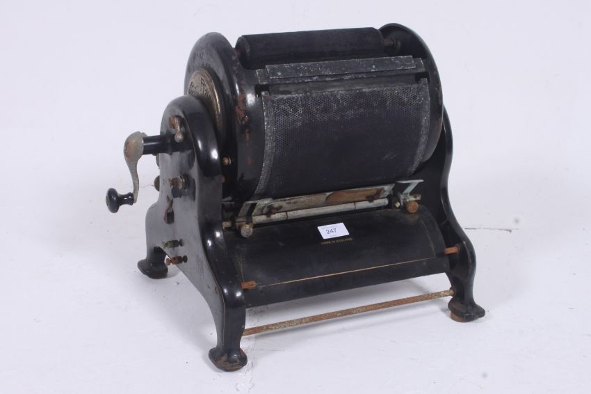 A vintage 20th century Industrial ebonised with gilt notation Roneo copier machine. 39cm x 45cm x 37cm