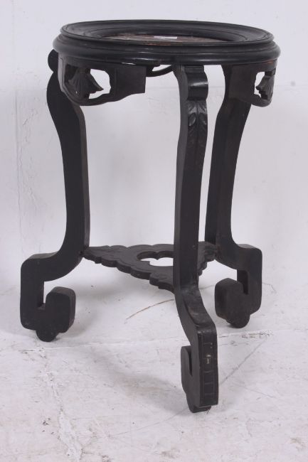 A 19th century Chinese hardwood antique ebonised plant stand raised on shaped supports complete with inset rouge marble top. H55cm x W45cm