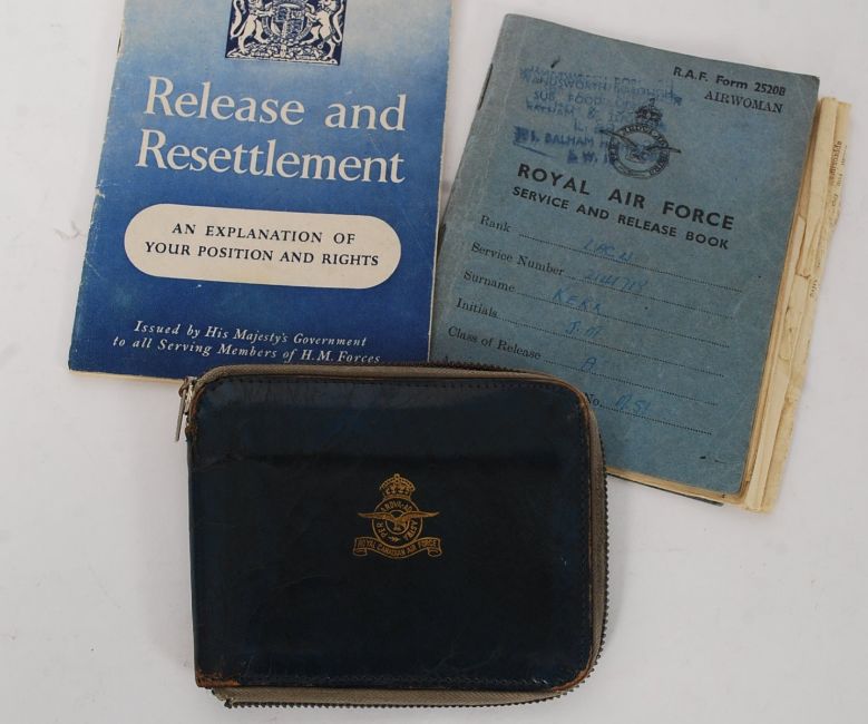 Collection of Royal Airforce paperwork items to include Canadian Airforce Wallet Release booklet and Airwoman Release Book form 2520B.
