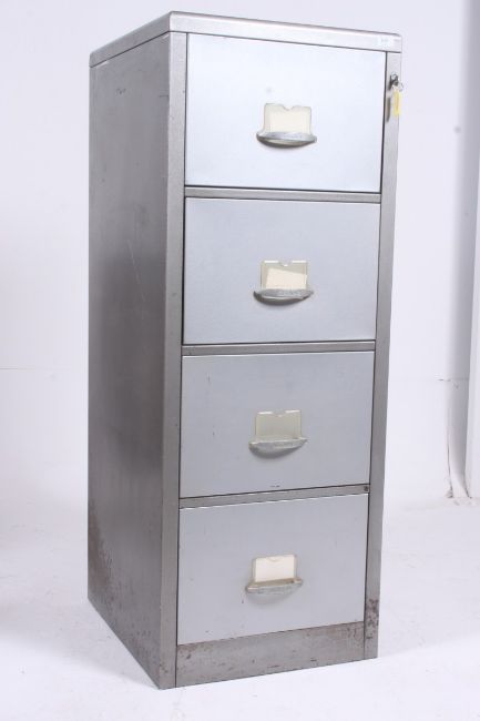 A good mid 20th century Industrial upright metal pedestal filing cabinet having 4 drawers with original handles. 134cm x 51cm x 58cm