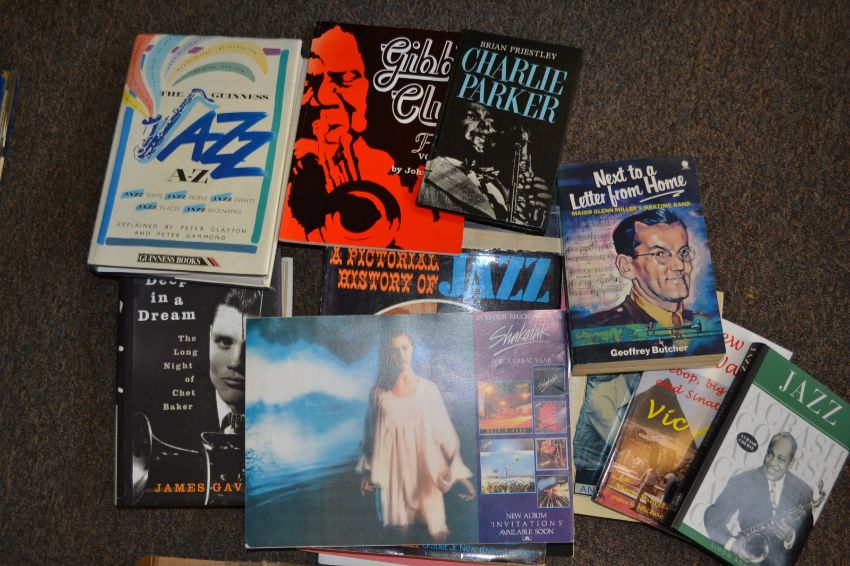 A collection of books and programmes on Jazz and blues music to include Charlie Parker, Chet Baker and others