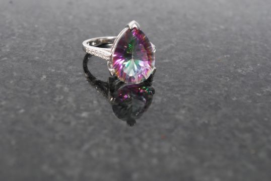A white metal 925 silver heart shaped ring with cubic zirconia's to the shoulders. Weight 5.4 grams. P