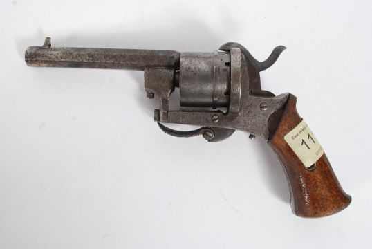 A pin fire .32 pistol, possibly Belgium, with side gate loading