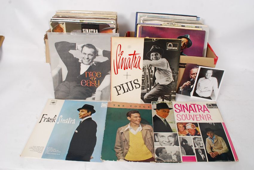 A collection of 100x Frank Sinatra vinyl record LP albums.