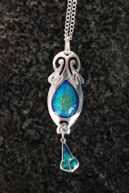 A white metal 925 silver and enamel art nouveau style pendant necklace