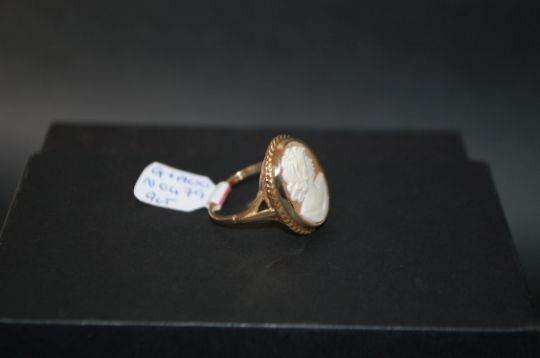 9ct gold small oval cameo ring. Size M. Weight 3.7g.