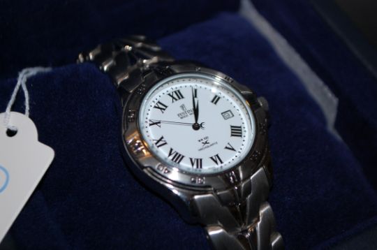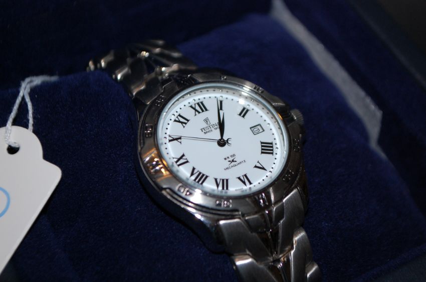 A gentlemans Festina wristwatch having stainless steel face and good bracelet complete in the box, 100m water resistant, mecaquartz movement, new and unused with paperwork