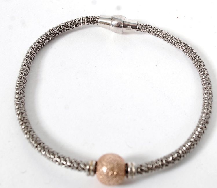 A silver bangle with a CZ cluster ball