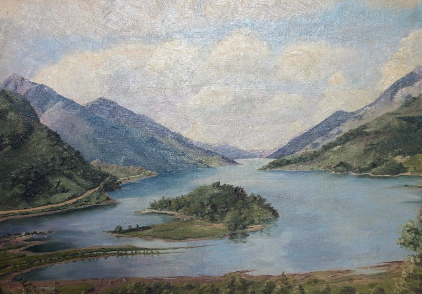 A framed oil on board painting by F.FOXWORTHY IN Aug. 1989,depicting a continental view of a lake. Measures:36cms x 48cms.