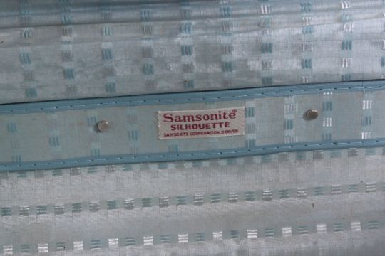 A stack of four vintage suitcases etc, one being a Samsonite case.