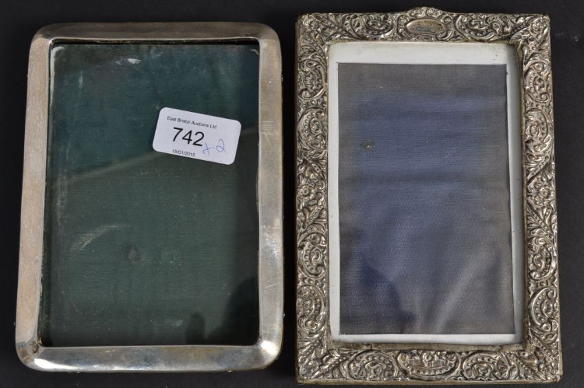 Two silver hallmarked photograph frames. Both apertures being 6"x4" approx.